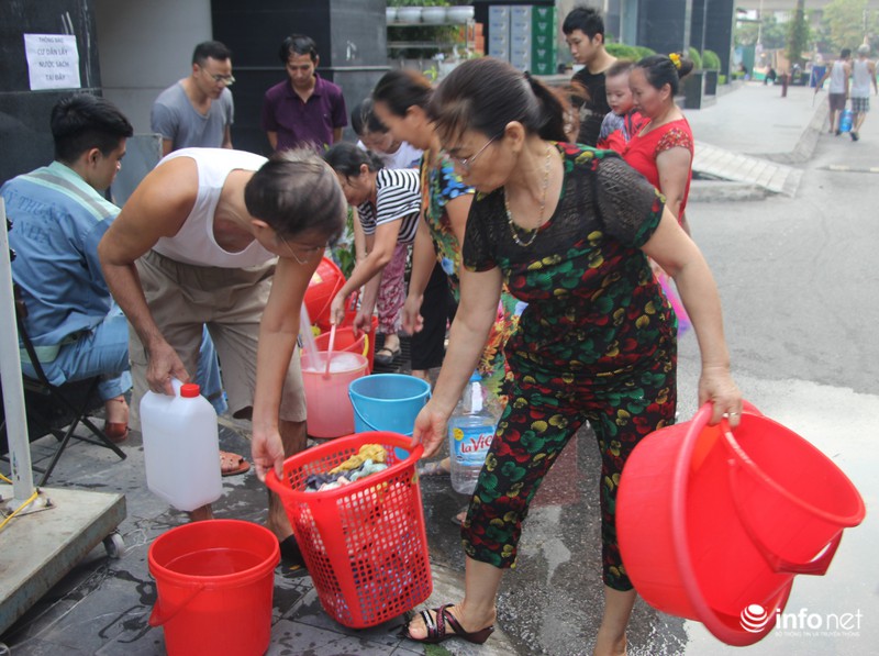 Trong chiều 21/10, các hộ dân ở chung cư Golden Land Buiding đã phải xuống dưới giặt quần áo..... |