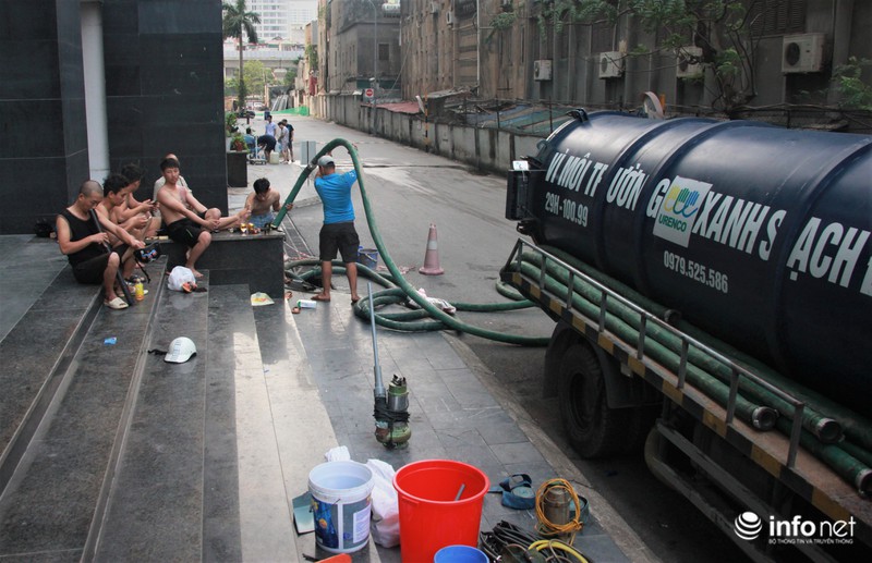 Được biết, bể ngầm của tòa nhà ở khu đô thị này gồm 3 tầng, có nhiều ngăn thông nhau với dung tích 3.500 khối. |