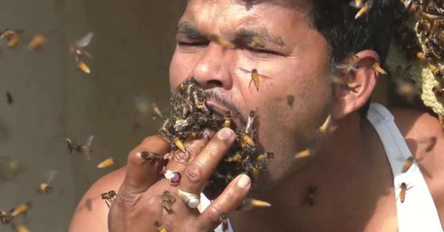 Kinh hoàng cảnh người đàn ông "nhốt" ong vào miệng khi lấy mật