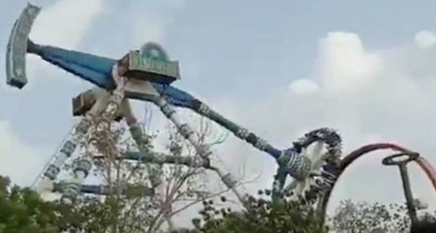 Kinh hoàng khi đu quay gãy trục, đứt làm đôi giữa không trung tại Ấn Độ