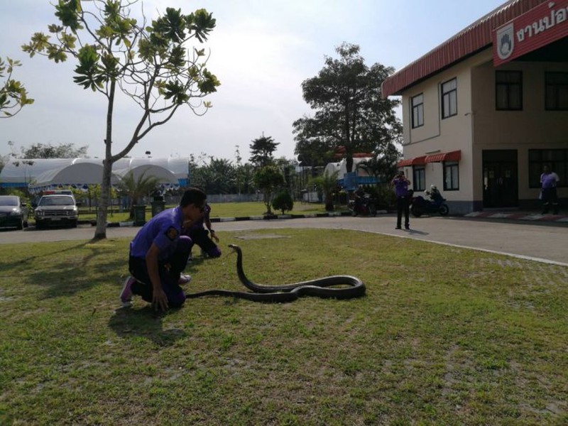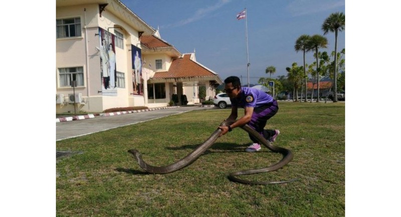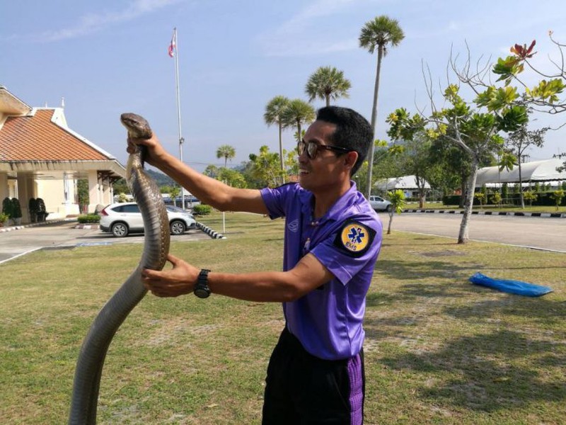 Sutee Naewhart, 37 tuổi, người tìm thấy con rắn hổ mang chúa và khéo léo kéo rắn ra khỏi nơi ẩn nấp. Đầu tiên Sutee Naewhart tóm chắc đuôi rắn, nó cố gắng vùng vẫy chạy trốn nhưng khoảng 20 phút, Sutee Naewhart đã kiểm soát được con rắn.