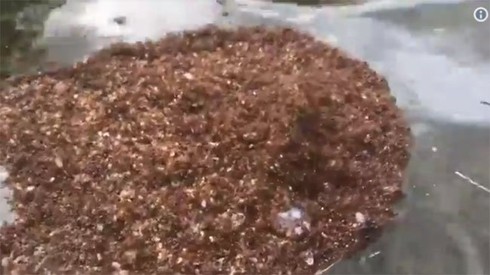 Phóng viên Gadi Schwartz đăng video lên Twitter với chú thích: “Hàng triệu triệu kiến lửa hình thành đảo và nổi trên nước lũ”.