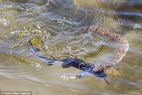 Con cá vùng vẫy nhưng không thoát được hàm răng sắc nhọn của rắn |