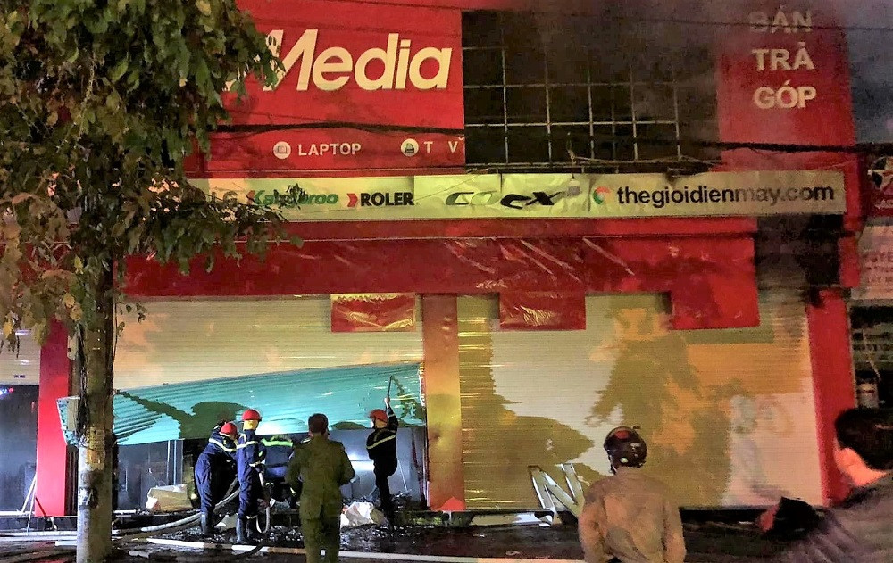 Khu vực xảy ra cháy là khu vực trưng bày sản phẩm của siêu thị điện máy Media, chủ yếu là các thiết bị điện tử như loa đài, máy nóng lạnh… Rất may, thời điểm xảy ra vụ cháy cháy không có người bên trong.