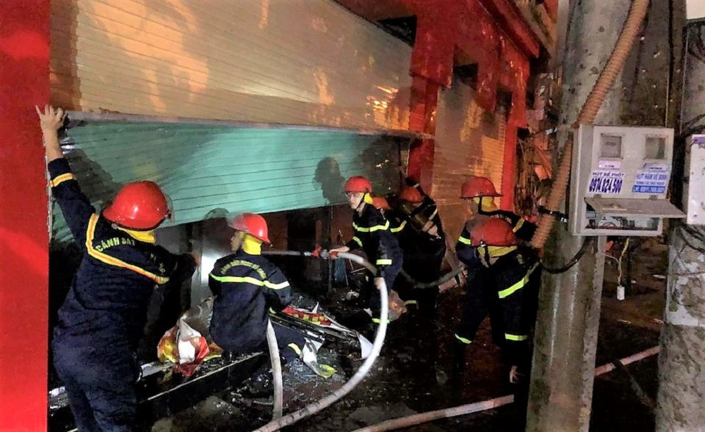 Ngay sau đó, Phòng Cảnh sát PCCC&CNCH đã chỉ đạo Đội CC&CNCH số 9 huy động 02 xe chữa cháy cùng 14 cán bộ, chiến sĩ nhanh chóng có mặt tại hiện trường, chữa cháy kịp thời, ngăn cháy lan sang các cửa hàng xung quanh.