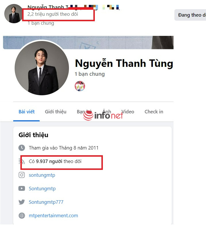 Khi phóng viên Infonet vào xem tài khoản của các nghệ sĩ, ca sĩ và những người nổi tiếng trên mạng xã hội thì tất cả đều gặp phải tình trạng chung là số lượng người theo dõi tụt giảm xuống dưới 10.000.