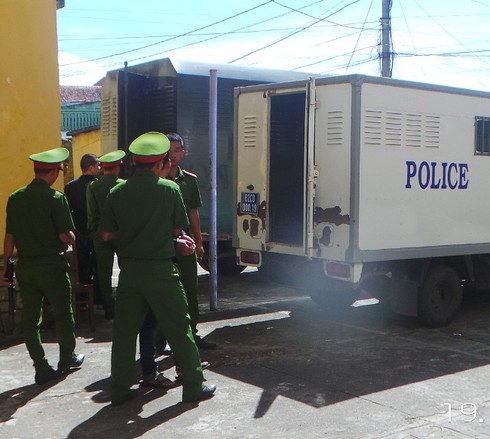 Các bị cáo được di chuyển nhanh ra xe dưới sự bảo vệ nghiêm ngặt của lực lượng Cảnh sát. |