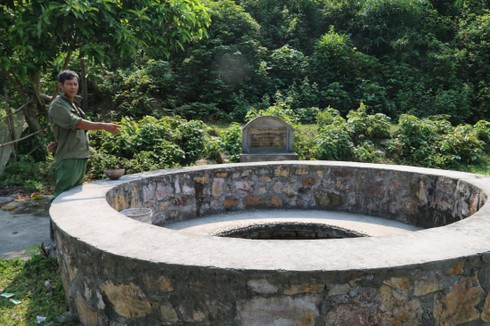 Người dân địa phương giới thiệu với tác giả về giếng Hệu. |
