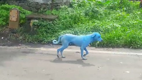 Kỳ lạ chó màu xanh sau khi tắm nước hồ ở Ấn Độ
