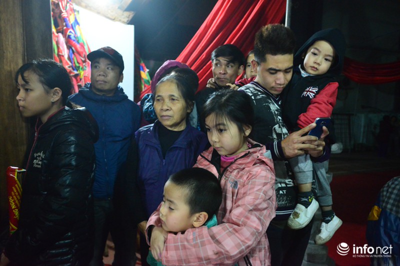 Ông Nguyễn Văn Vịnh (80 tuổi), một người dân ở làng, dù tuổi đã cao nhưng năm nay ông vẫn tự mình đi lấy đỏ về cho gia đình. "Hàng năm, các con tôi vẫn đi xin đỏ về nhưng năm nay các con bận đi có việc riêng nên tôi với cháu đi ra đình vừa vui lại vừa tiện lấy đỏ về. Cũng may nhà ở ngay gần sân đình nên vẫn kịp mang đỏ về nhà". |