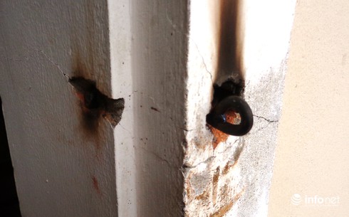 Lực lượng chức năng đang tiến hành khắc phục lại chốt, khóa cửa. |