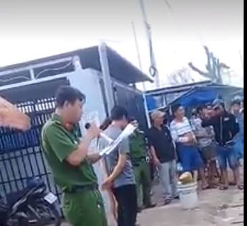 Công an thị trấn Dương Đông công khai hóa người mua bán dâm trên vỉa hè. (Hình ảnh cắt từ clip) |