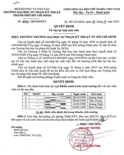 Từ khóa: sinh viên đánh bài đánh bài trong nhà trường kỷ luật khiển trách trước toàn trường đại học sư phạm kỹ thuật tphcm