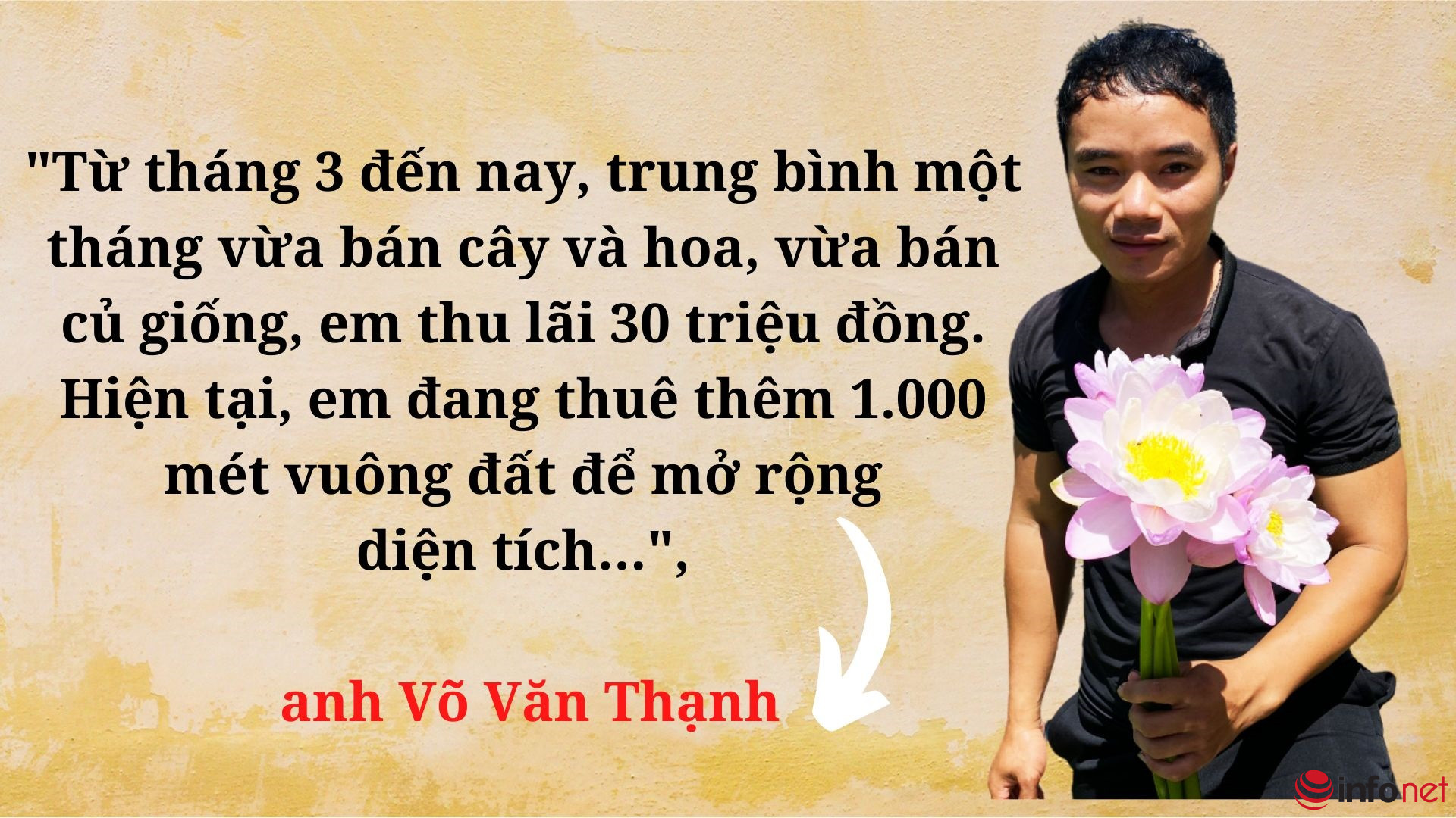 Từ tháng 3 đến nay, trung bình một tháng vừa bán cây và hoa, vừa bán củ giống, Thạnh thu lãi 30 triệu đồng. “Hiện tại, em đang thuê thêm 1.000 mét vuông đất để mở rộng thêm diện tích…", Thạnh chia sẻ về dự định trong tương lai.