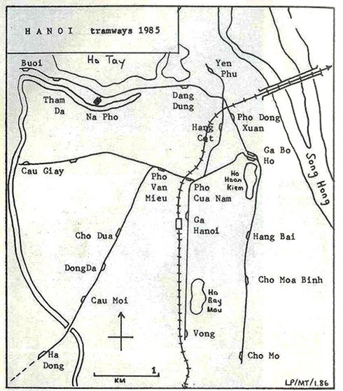 Sơ đồ các tuyến tàu điện Hà Nội năm 1985. |