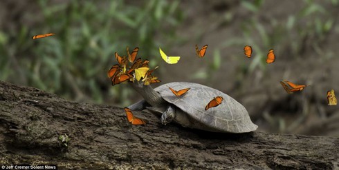 Ông Phil Torres, nhà khoa học tại Trung tâm Nghiên cứu Tambopata ở Peru cho biết, khu rừng phía tây rừng rậm Amazon là nơi rất hiếm chất khoáng. Hàng chục con bướm bay tới, đậu quanh mắt rùa để cố hút được một chút nước ẩm từ mắt.