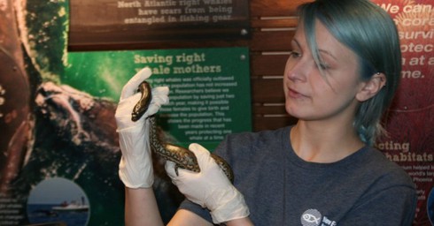 Nhân viên thủy cung giới thiệu con trăn cái tự sinh con không cần giao phối. |