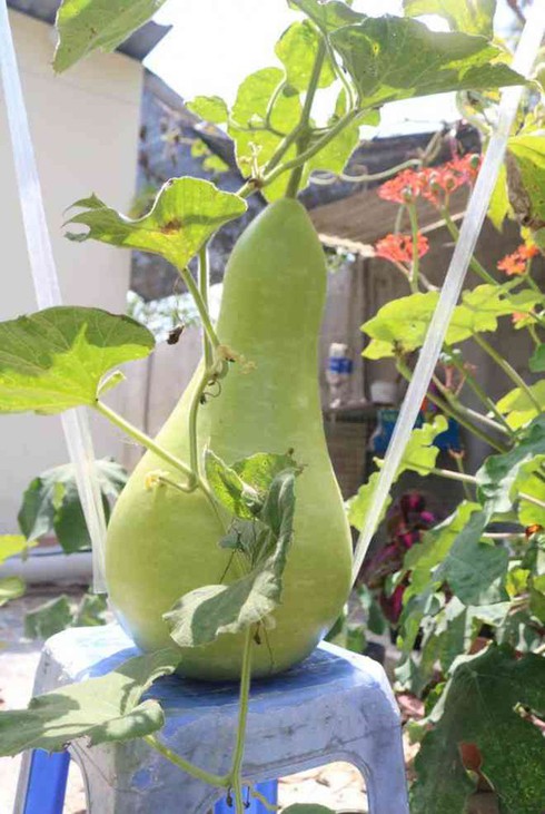 Những trái bầu "siêu to, khổng lồ" do ông Tài trồng |