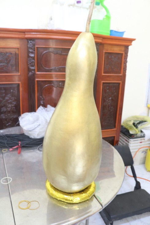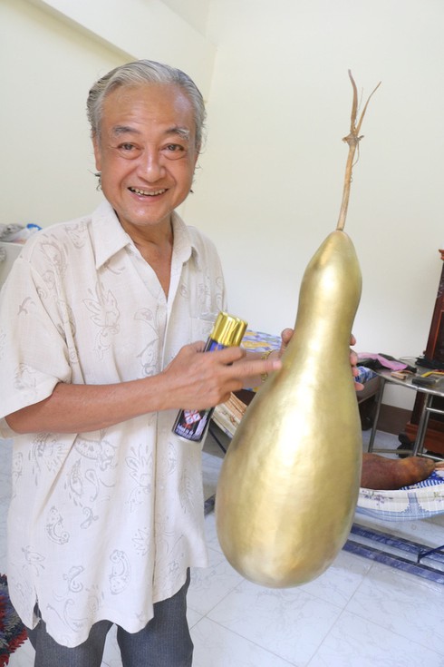 Theo ông Tài, loại trái bầu này để chưng khoảng 2 tháng vẫn còn tươi xanh. Nếu muốn để chưng lâu thì phơi khô, cắt một phần trên cuống để lấy hạt ra. Sau đó, sơn màu vàng rồi vẽ lên thân bầu nếu đem chưng thì rất đẹp.