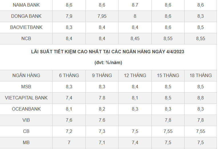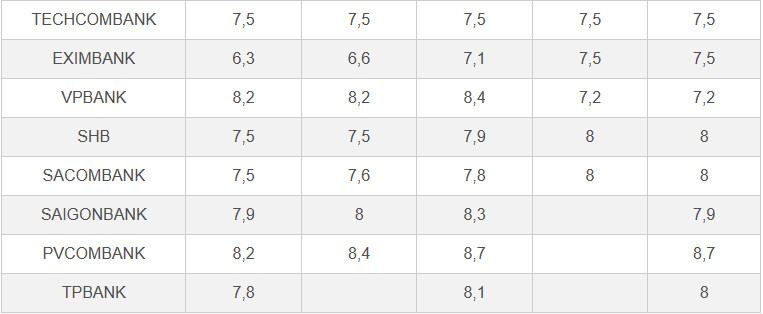 Ngoài ra, các ngân hàng khác giảm lãi suất huy động ở một số kỳ hạn 6 tháng trở lên còn có MSB, MB, VietCapital Bank, TPBank, VIB, Sacombank, SHB.
