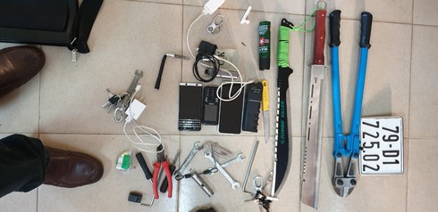 Tang vật Công an TP Đà Lạt thu giữ gồm 2 xe máy hiệu Exciter BKS 49E-644.18 và 49E-63704, một túi xách lớn bên trong có 3 mã tấu, 4 vam phá khóa, kìm cộng lực, biển số xe cùng nhiều công cụ phá khóa khác.