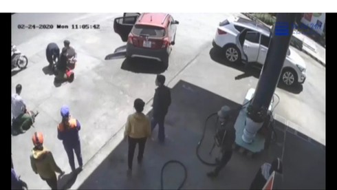 Hiện trường vụ bắt cướp tại cây xăng Xô Viết Nghệ Tĩnh. (Ảnh cắt từ clip) |