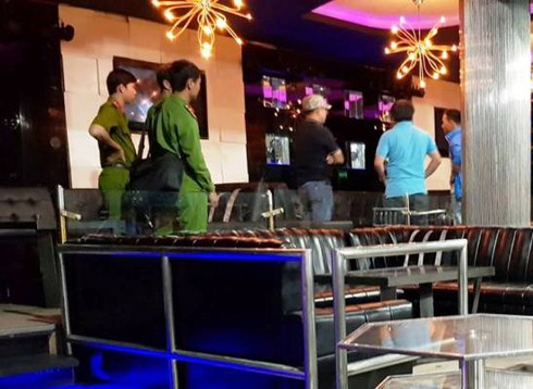Lực lượng chức năng đang điều tra vụ án mạng tại quán bar. |