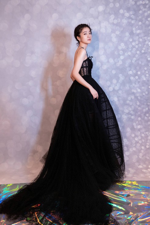 Lâm Tâm Như xinh đẹp tựa nữ thần với đầm đen và môi tô đỏ nổi bật |