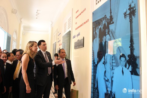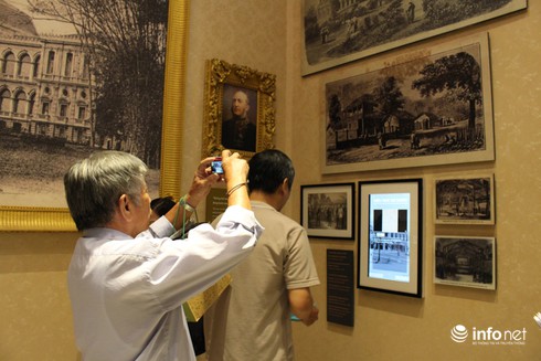 Buổi triển lãm trưng bày những hình ảnh, tài liệu về Dinh Độc Lập với 1 thế kỷ trắng (Ảnh: Hồng Phương) |