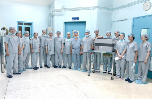 Ê kíp ghép tạng của Bệnh viện Nhi đồng 2 và các chuyên gia Bệnh viện Chợ Rẫy |