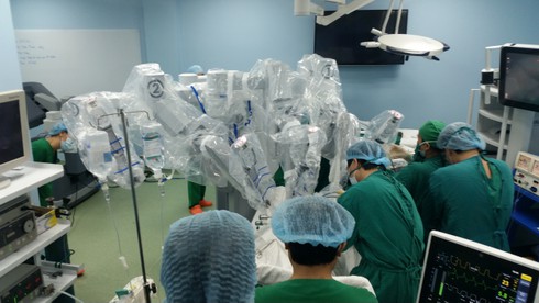 Các bác sĩ đang tiến hành phẫu thuật bằng robot |