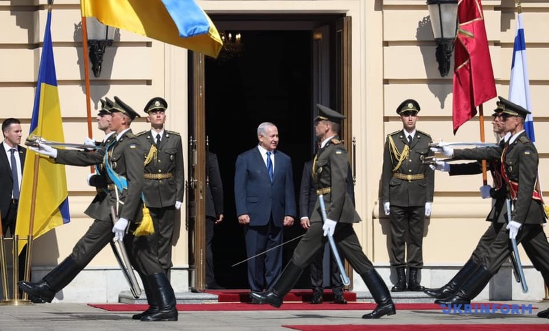 Theo phóng viên Ukrinform, quốc ca của hai nước Israel và Ukraine đã vang lên trên quảng trường gần Cung điện Mariinsky, sau đó Tổng thống Zelensky và Thủ tướng Netanyahu đã duyệt đội danh dự Ukraine.