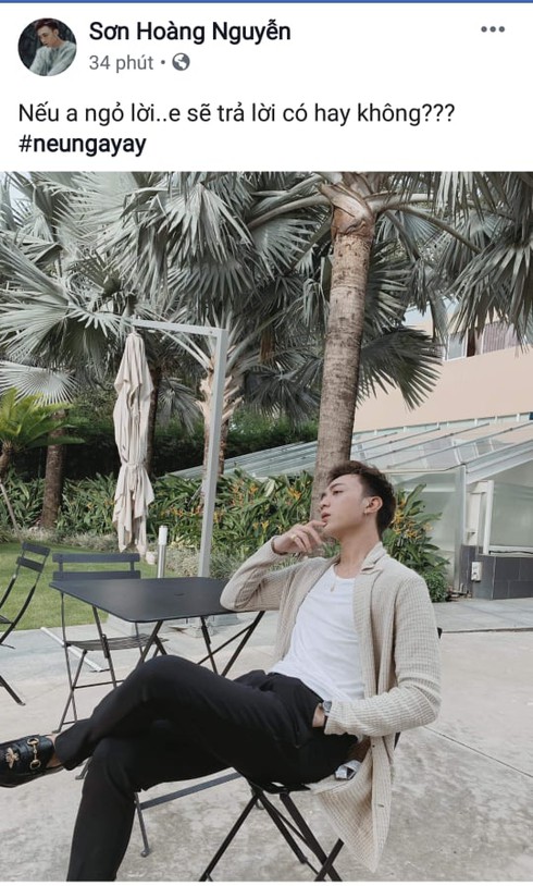Mới đây, nam ca sĩ “Phía sau một cô gái” chia sẻ hình ảnh PR cho MV âm nhạc mới của mình Nếu ngày ấy. SooBin Hoàng Sơn viết: “Nếu anh ngỏ lời, em sẽ trả lời có hay không?” và ngay lập tức nhận được hàng trăm comment của khán giả “Chỉ cần là Bin thì em luôn đồng ý”, “Em đồng ý ngay luôn ạ”, “Em cũng ngỏ lời với anh nhé”. MV Nếu ngày ấy của SooBin đang trong quá trình quay lại cái kết khác do cái kết cũ của MV bị Youtube “sờ gáy” vì có yếu tố bạo lực. |