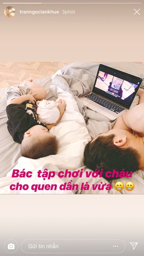 Lan Khuê khoe ảnh chồng tập chơi với cháu để sau này chơi với con khiến fans ngưỡng mộ. |