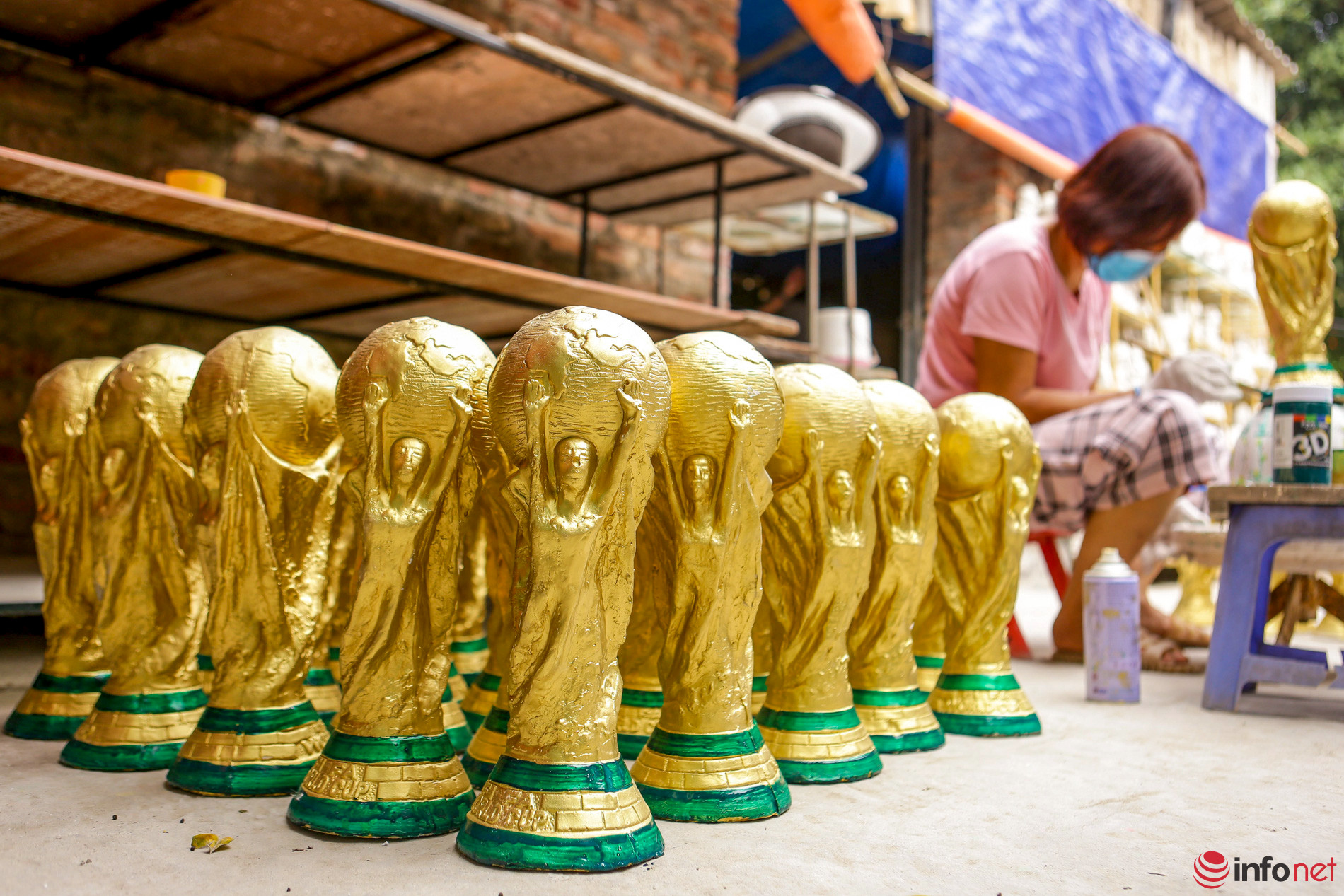Trước ngày khai mạc vòng chung kết World Cup 2022 (20/11), nhiều cơ sở sản xuất gốm tại xã Bát Tràng (huyện Gia Lâm, Hà Nội) đã cho ra đời những chiếc "cúp vàng World Cup 2022 Made in Vietnam" để phục vụ niềm đam mê của người hâm mộ bóng đá.