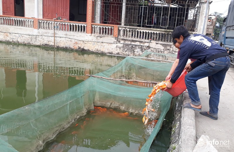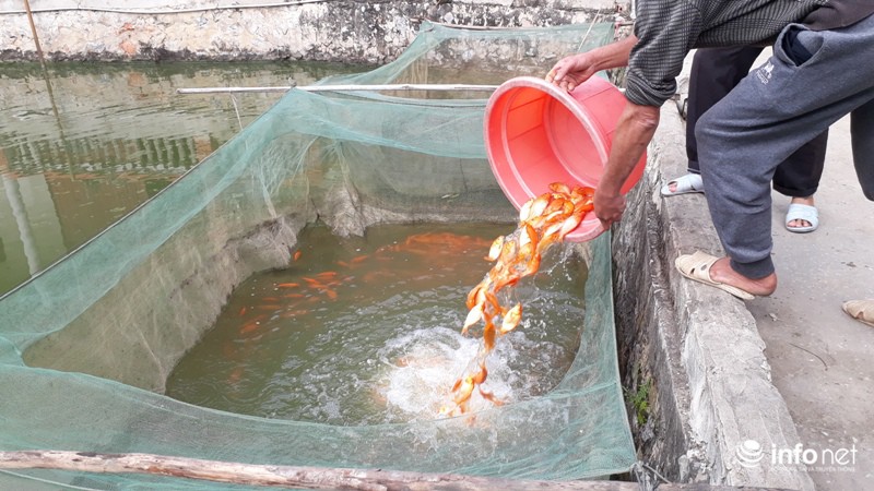 Theo người dân trong làng cho biết, để nuôi cá chép cung cấp cho thị trường thì người dân phải bắt tay nuôi từ tháng 7 Âm lịch đến ngày ông Táo về chầu trời thì thu hoạch bán cho người tiêu dùng.