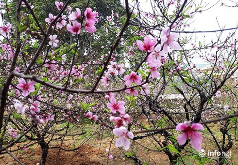Năm nay do đào phai Xuân Du nở sớm nên nhiều gốc cây vẫn còn ở lại vườn. |