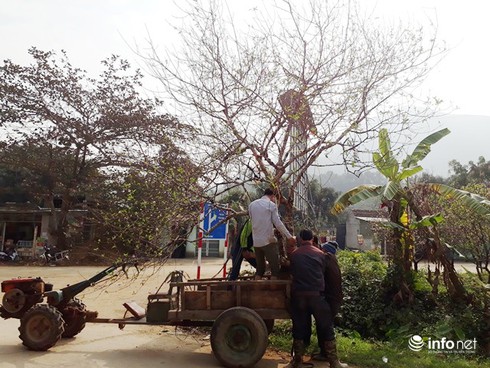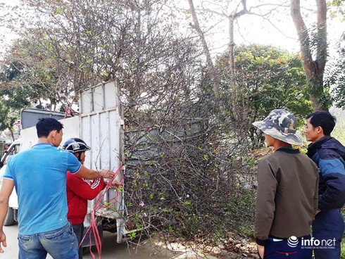Bắt đầu từ ngày 21-22 tháng Chạp hàng năm, vào lúc rạng sáng hàng trăm người dân dùng xe máy, xe đạp đi hàng chục km để bán đào, có những người đi 2-3 chuyến/ ngày.