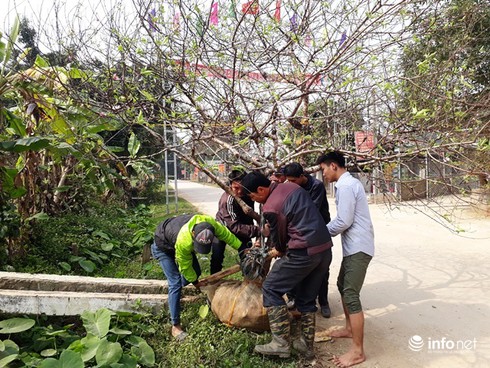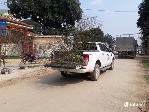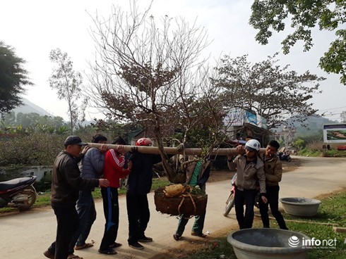 Một gốc đào to phải cần đến nhiều người vận chuyển ra xe. |
