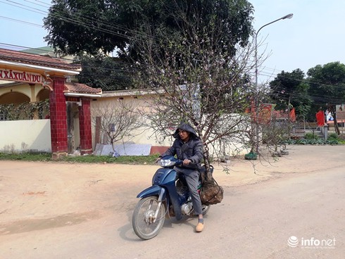 Đã thành thông lệ cứ vào dịp cuối năm dọc các tuyến đường của xã Xuân Du lại nhộn nhịp người chở đào. Mặc dù có nhiều thương lái đến mua nhưng nhiều người dân địa phương vẫn mang đào xuống TP. Thanh Hóa và các huyện lân cận để bán. |