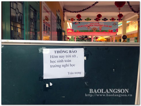 Dự báo trong những ngày tới, thời tiết Lạng Sơn tiếp tục rét đậm, rét hại. Sở GD&ĐT cũng yêu cầu các nhà trường có biện pháp chống rét cho các phòng học, các bếp ăn bán trú, phòng y tế đảm bảo đồ ăn nóng ấm, thuốc men phòng khi học sinh bị ốm trong trời lạnh. Các trường không được tổ chức các hoạt động ngoài trời trong thời tiết rét đậm.