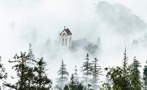 Thị trấn Sa Pa mây mù bao phủ. |