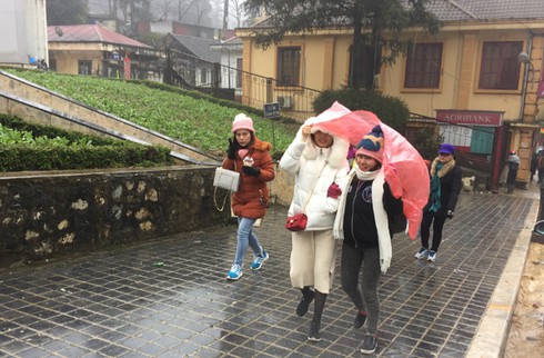 Từ ngày 8/1, do ảnh hưởng của gió mùa đông bắc, khiến nền nhiệt độ ở khu du lịch Sa Pa xuống rất thấp.