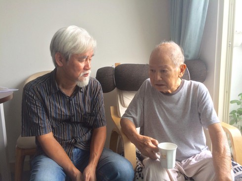Tác giả - nhà phê bình văn học Phạm Xuân Nguyên trò chuyện với nhà giáo Phạm Toàn thời gian ông đang điều trị bệnh. (Ảnh: X.N) |
