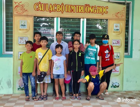 Mỗi buổi sinh hoạt Câu lạc bộ, ông Trần Hữu Huệ thường dành tặng 10 túi tem cho các em học sinh. |
