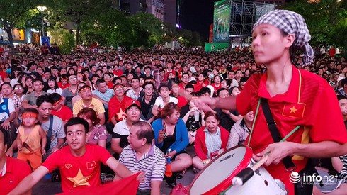 Không khí cuồng nhiệt tại phố đi bộ Nguyễn Huệ trong một lần đội tuyển Việt Nam thi đấu. |