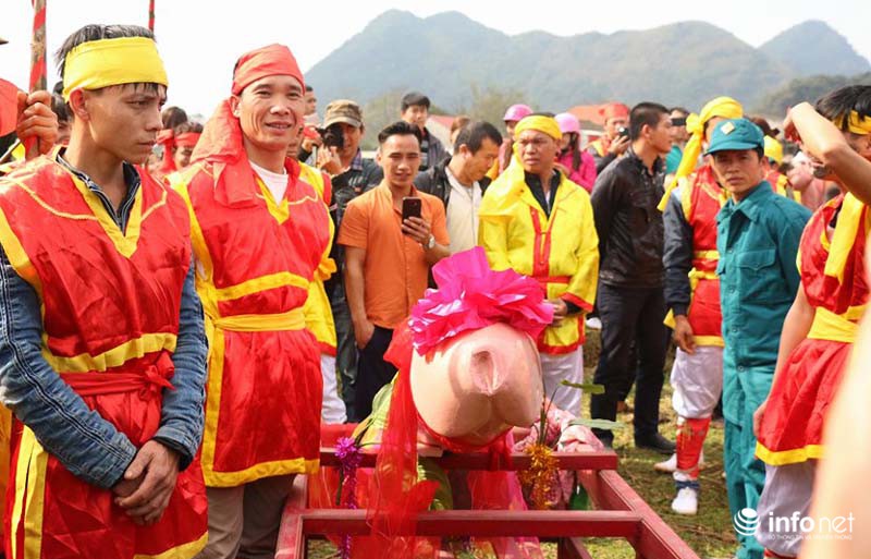 Một điểm độc đáo nữa là nam giới trong làng khi tham gia lễ hội sẽ bôi nhọ lên mặt