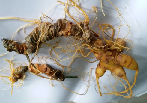 Cận cảnh những củ sâm 12 năm tuổi. |