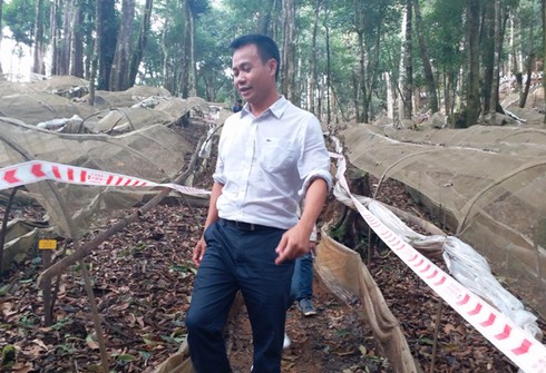 Ông Trần Hoàn - Chủ tịch HĐQT, TGĐCông ty Cổ phần sâm Ngọc Linh Kon Tum đi thăm vườn sâm cùng PV Infonet. |
