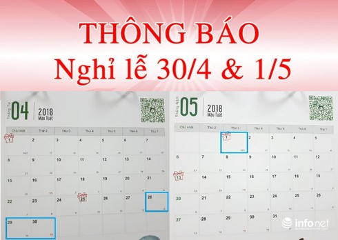 Lịch nghỉ lễ 30 tháng 4, 1/5 và giỗ Tổ Hùng Vương 2018
